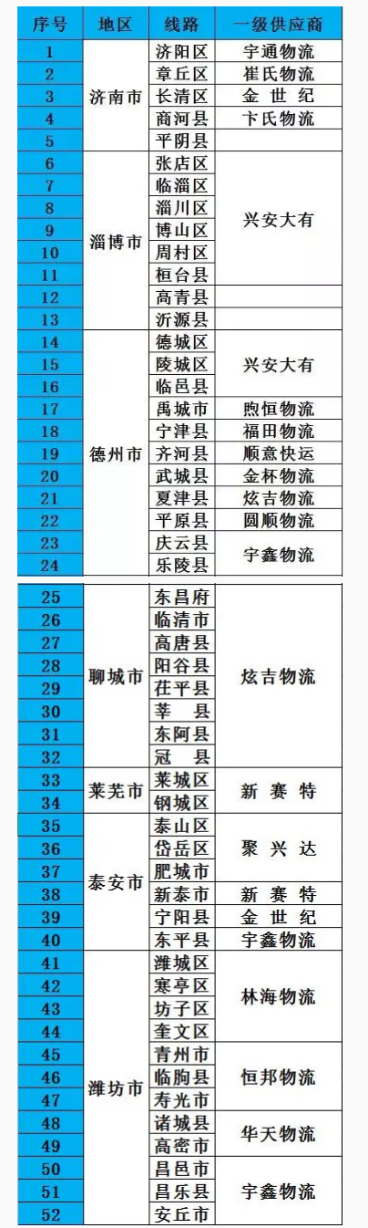 1、濟南為中心輻射山東所有地、縣級市,直達線路122條,提升服務時效的同時降低客戶的運營成本