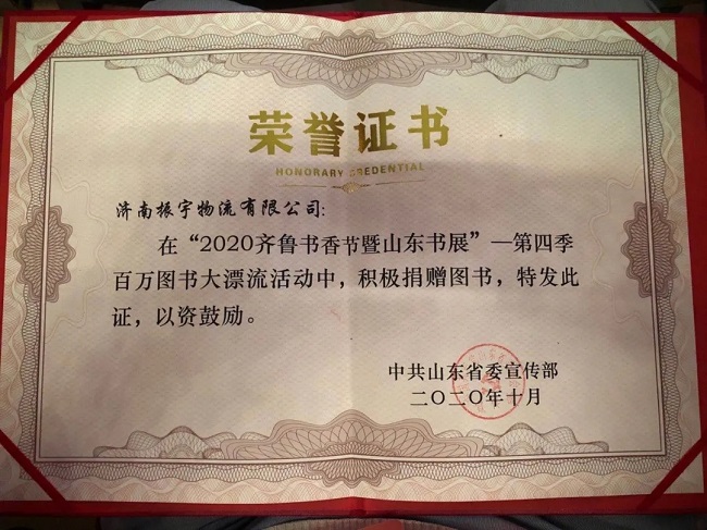 振宇物流此次積極主動(dòng)參與“2020年齊魯書(shū)香節(jié)暨山東書(shū)展-第四季百萬(wàn)圖書(shū)大漂流”活動(dòng),只為讓每一位鄉(xiāng)村孩子都能讀上一本完好的書(shū),努力承擔(dān)書(shū)籍裝卸及運(yùn)輸,將這些書(shū)籍送往東明縣沙窩鎮(zhèn)姜屯小學(xué)。