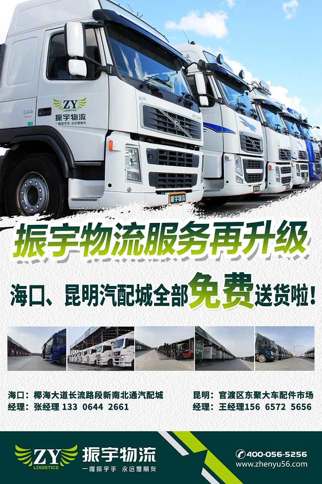 為更好的優化物流服務,振宇物流開啟“???、昆明汽配城全部免費送貨”服務,讓廣大新老客戶真正獲得更加便捷、高效、優質的物流體驗。