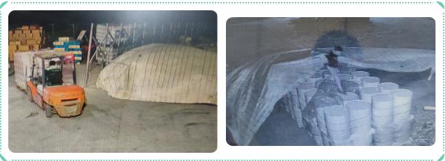 部分剛到家的同事,還沒來得及跟家人寒暄,又悄然踏上了返回公司的路途,在公司堅守的員工率先在雨中飛馳著,顧不上大雨淋濕和風中的寒冷,拼命抵擋著肆虐狂風卷起的篷布,第一時間給所有貨物蓋上了篷布,即便是在場地受到約束的情況下,大家依然將貨物進行了完好的轉移。