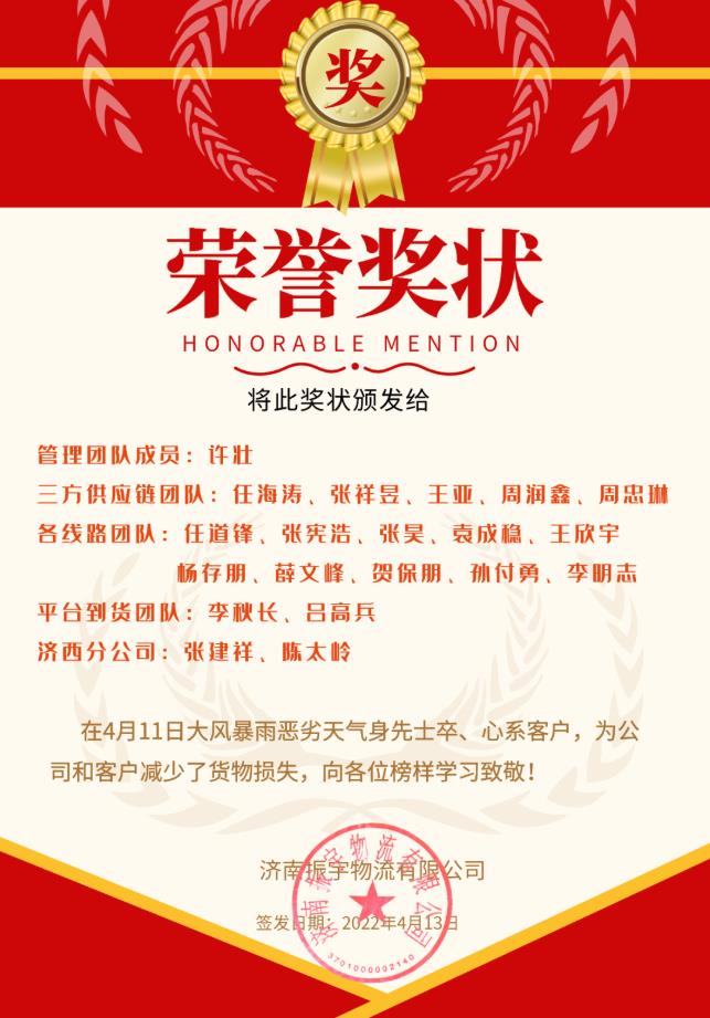 正是因為大家的努力,讓我們在面對這場突如其來的暴雨時,沒有慌亂自己的步伐,也是大家的付出,在這場暴風雨的戰斗中,我們將損失降到了最低,致敬雨夜中的振宇人。同時,這次突發事件,也給我們敲響了警鐘,希望各位同事在遇到惡劣天氣或其他突發狀況前能更好的籌劃和加固,防患于未然,繼續展現振宇人獨特的振宇魂。