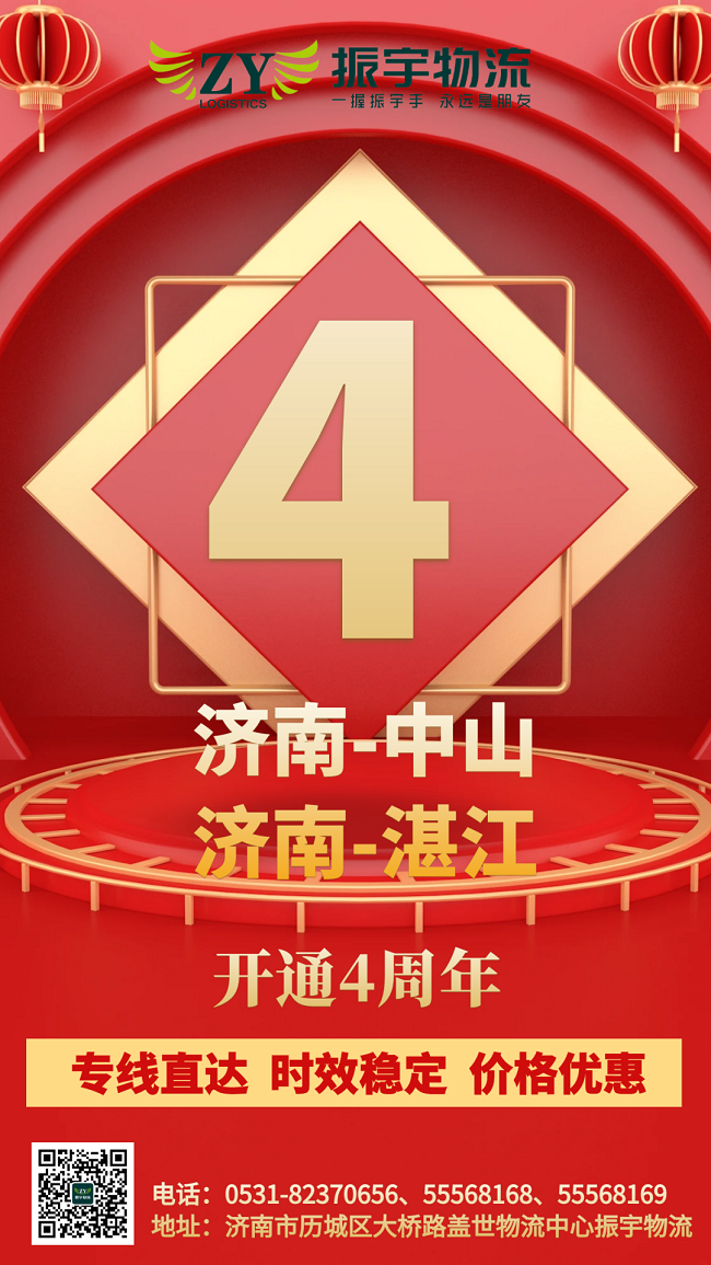 振宇物流集團丨濟南-中山、湛江直達專線開通四周年,線路發貨優惠中……