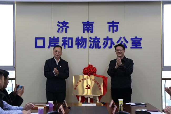 隨后,中國道路運輸協會副秘書長高兮同志就TIR業務發展態勢進行了詳細介紹。最后,高兮、夏慶同志為濟南市國際公路運輸支部揭牌。