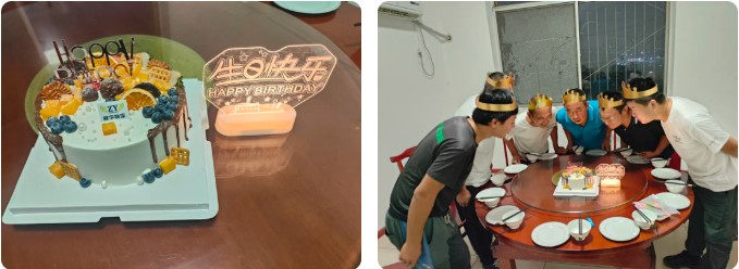 生日會上,公司為壽星們準(zhǔn)備了豐盛的餐食和精致的蛋糕,大家圍坐一堂,卸下工作的疲憊,暢聊生活趣事,分享彼此的故事與期待。在眾人的掌聲中,壽星們戴上生日帽,雙手合十許下心愿,隨后共同吹滅蠟燭,用笑容定格這充滿意義的瞬間。