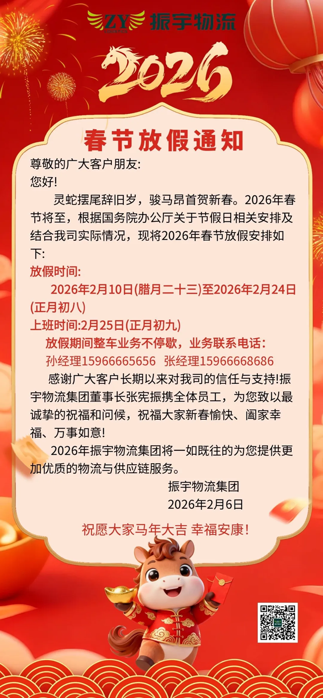 振宇物流集團(tuán)丨2026年春節(jié)放假通知