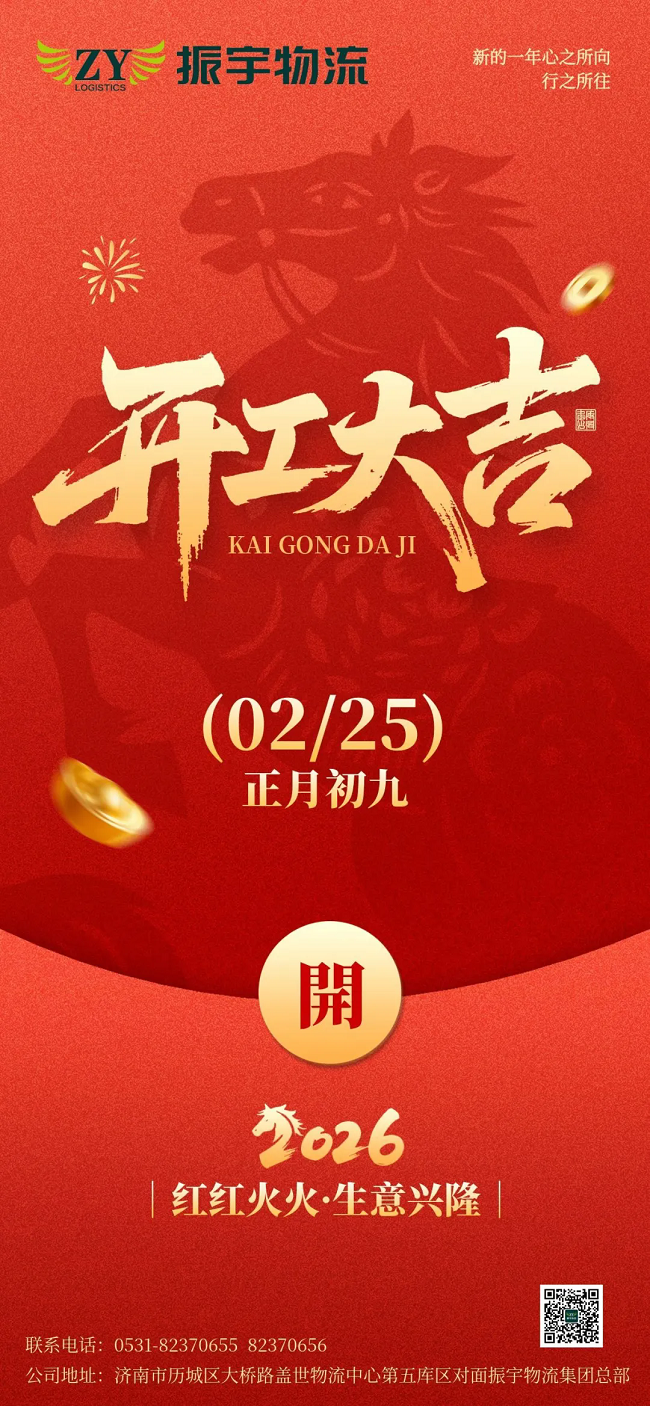 振宇物流集團開工通知丨2月25日(農歷正月初九)正式開工